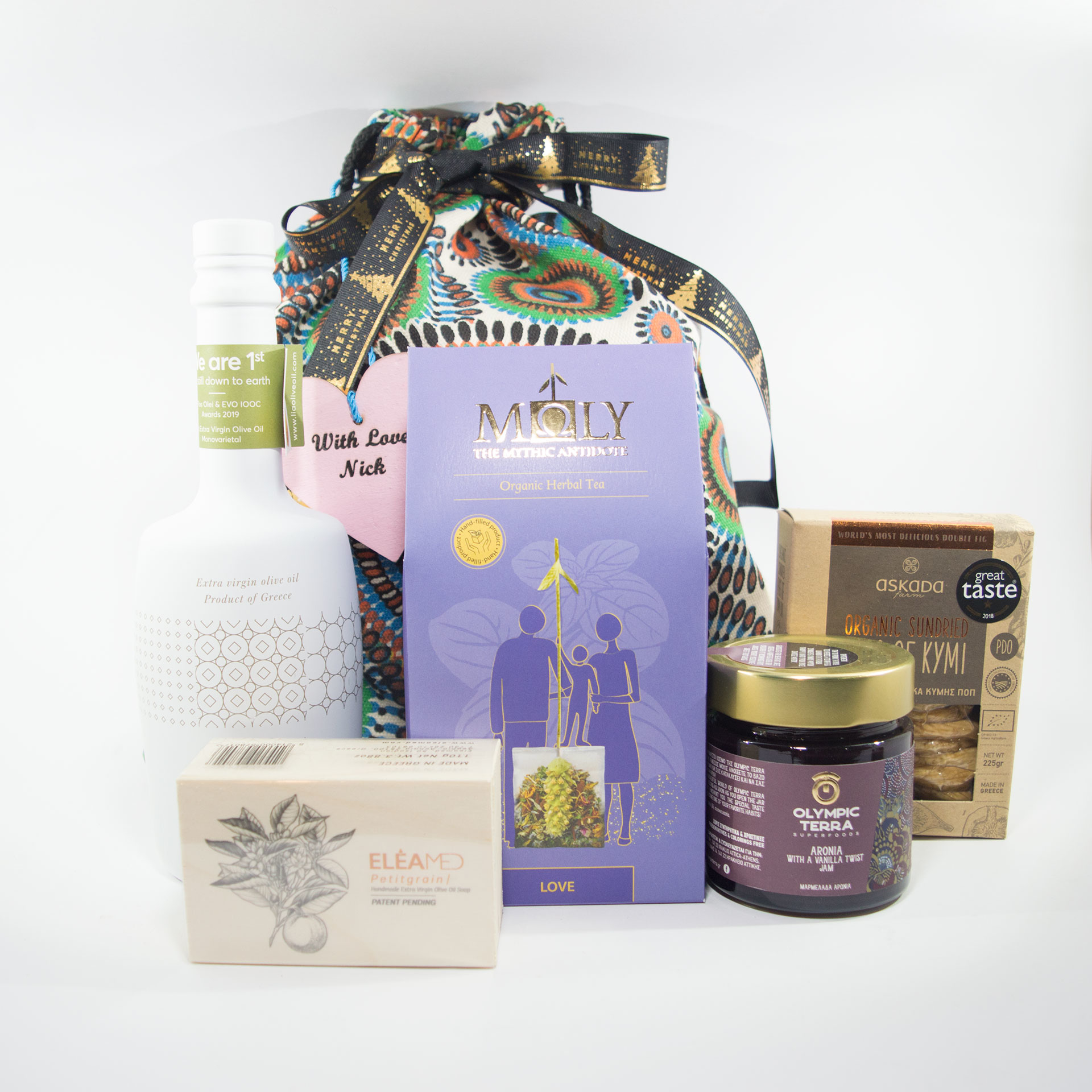 - Sabores veganos griegos en una caja de regalo tradicional para ella.