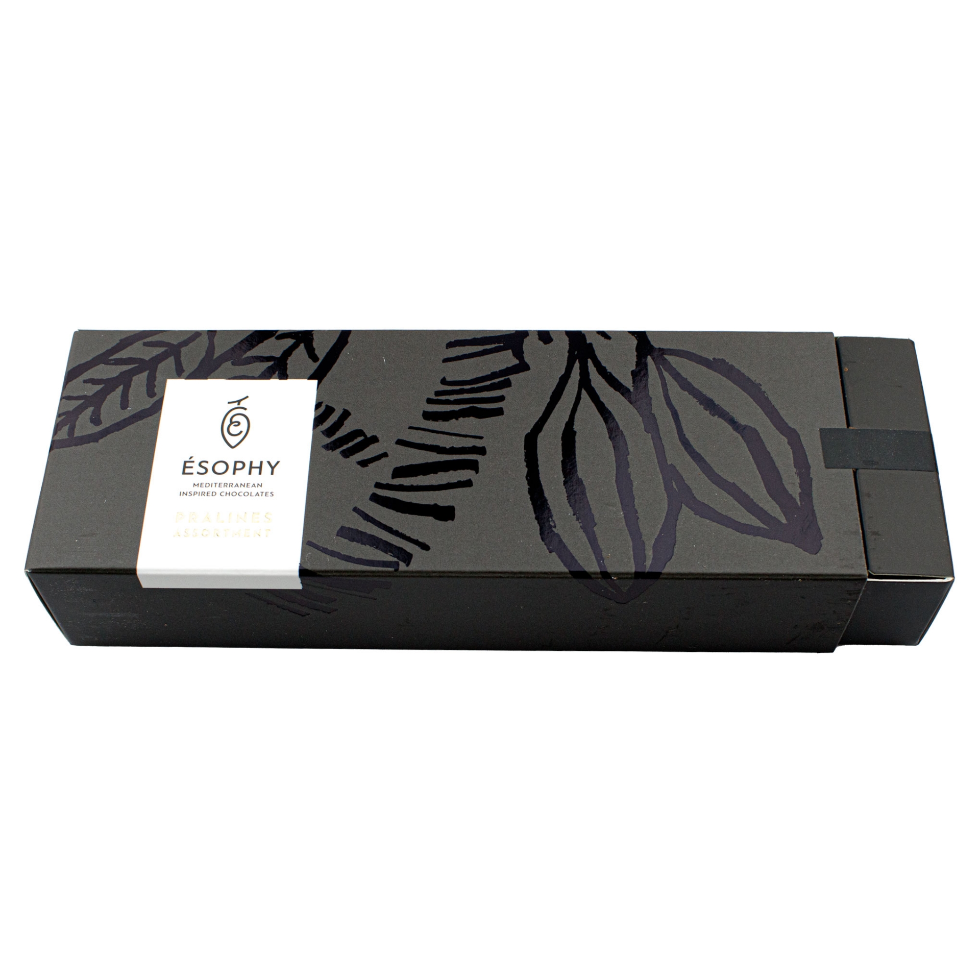 Bombones griegos de lujo – Caja de regalo de gianduja y caramelo salado | Auténtico chocolate mediterráneo artesanal, 100 g